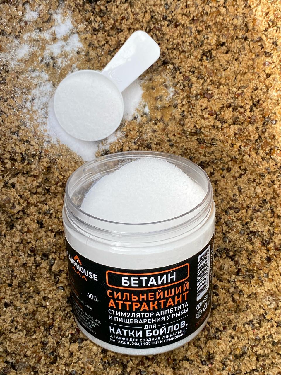 Бетаин HCL — относится к пищеварительным ферментам. Он способствует усвоению питательных веществ и перевариванию пищи. Хорошо зарекомендовал себя при изготовлении бойлов и различных гранул. Дозировка 10-30гр.